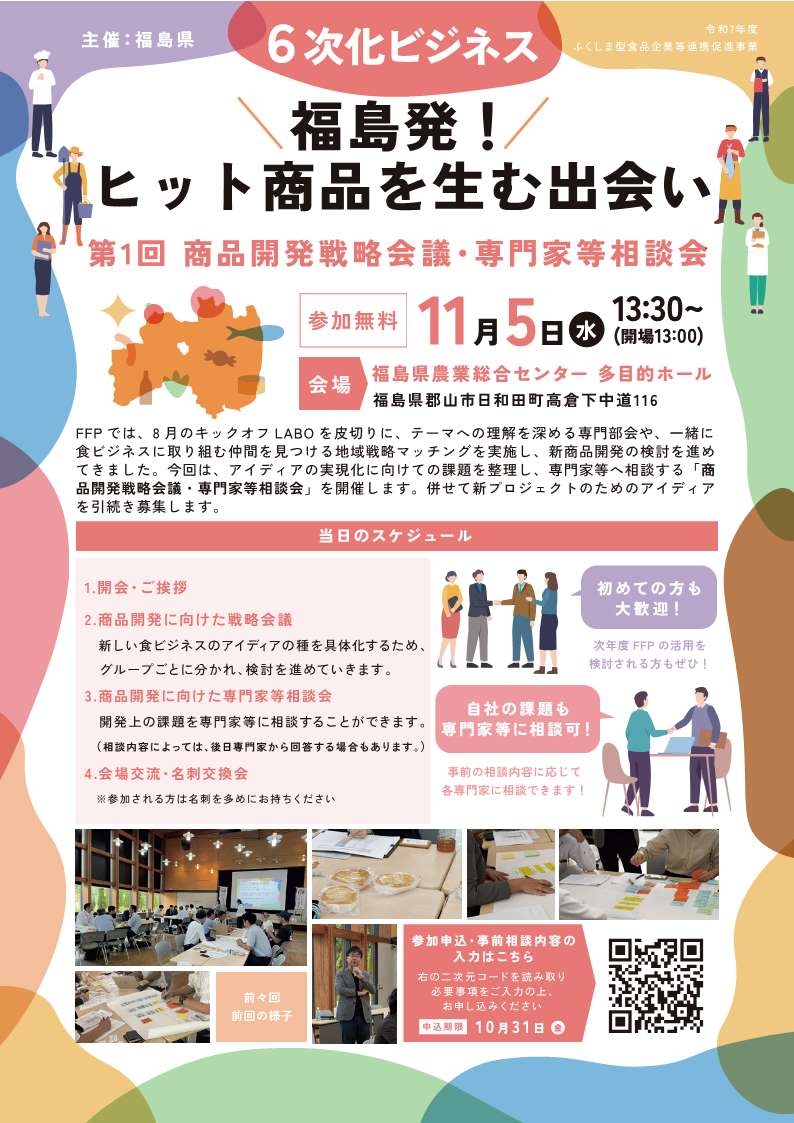 11月5日(水)、福島県が主催する6次化ビジネス第1回商品開発戦略会議・専門家等相談会が開催されます!