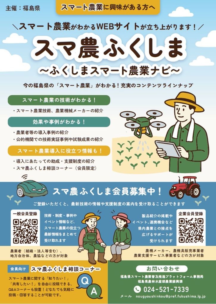福島県スマート農業普及推進プラットフォーム(スマ農ふくしま)開設の事前会員募集のお知らせ