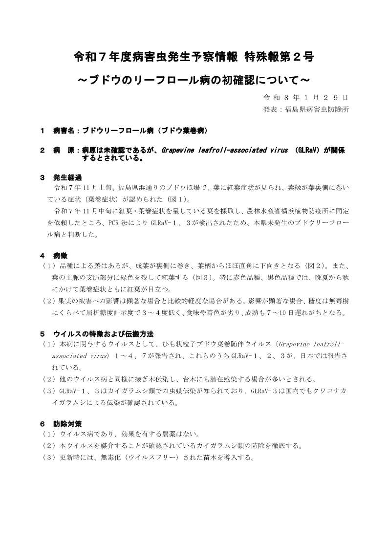 令和7年度 病害虫発生予察情報 特殊報第2号