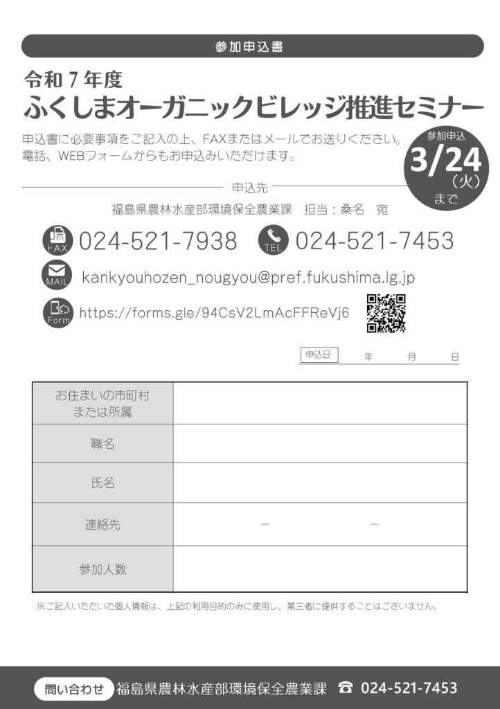 また、本セミナーの詳細につきましては福島県農林水産部環境保全農業課(電話:024-521-7453)までお問い合わせください。