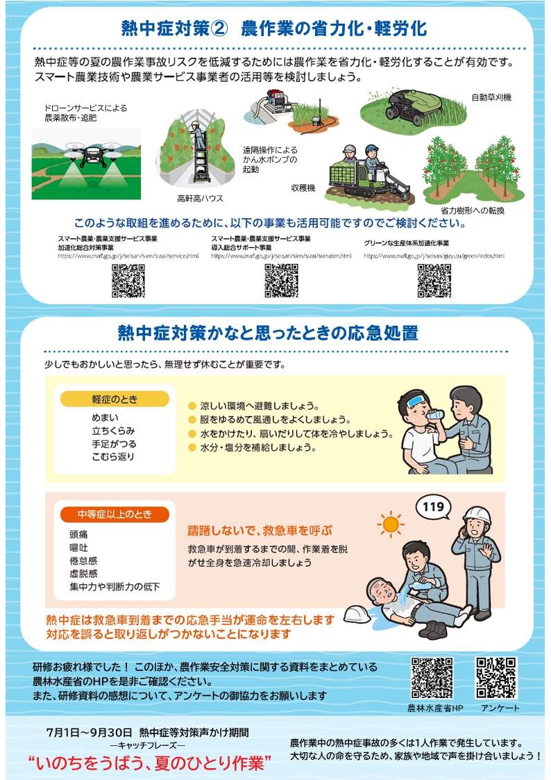 4月より熱中症対策等の研修にご活用いただける研修資材が作成され、農林水産省ホームページに掲載されています。