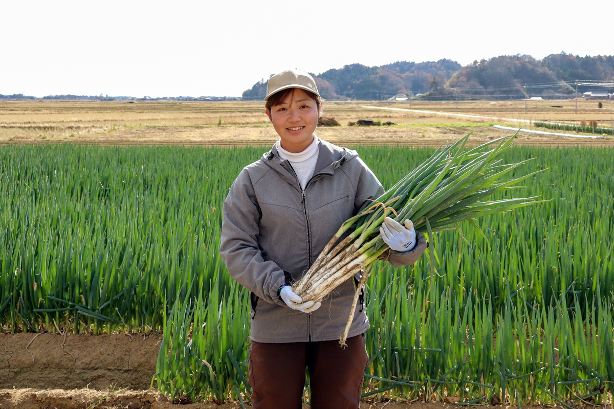 岩間町の広大な敷地で丁寧に育てられたねぎです。