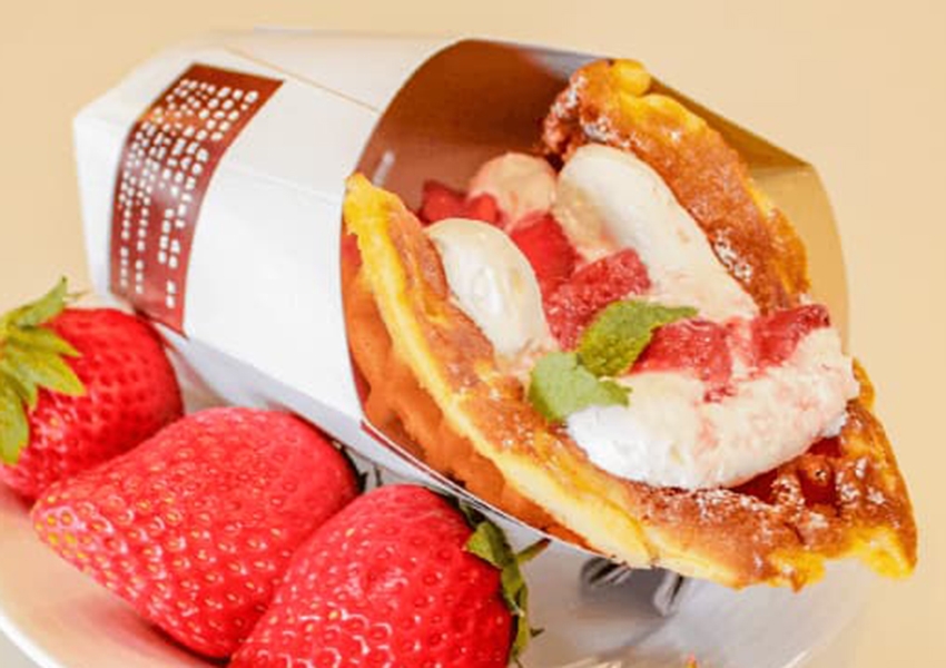 こちらは、自家製の甘酸っぱいいちごソースとマスカルポーネクリームをトッピングした「ストロベリーワッフル」。