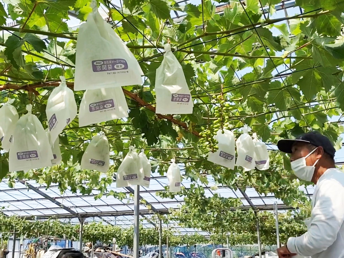 糖度が高いブドウは鳥獣害にも遭いやすく、野生動物の浸入を防ぐ工夫を凝らしながら、収穫の日まで慎重に実を守ります。