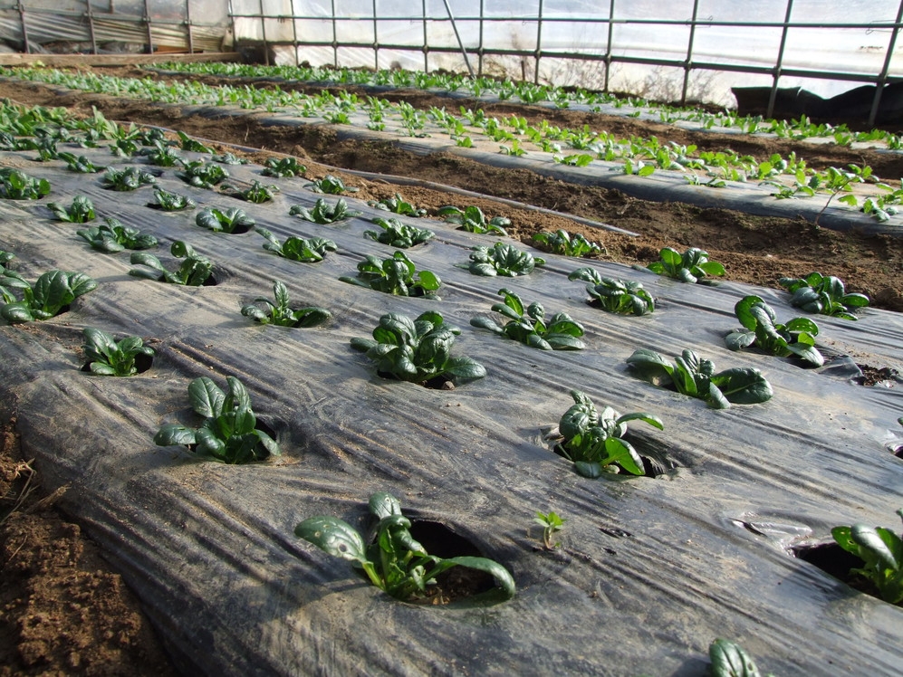 ハウスでも、玉ねぎや大根の根野菜、小松菜や水菜などの葉物など、さまざまな野菜を栽培しています。