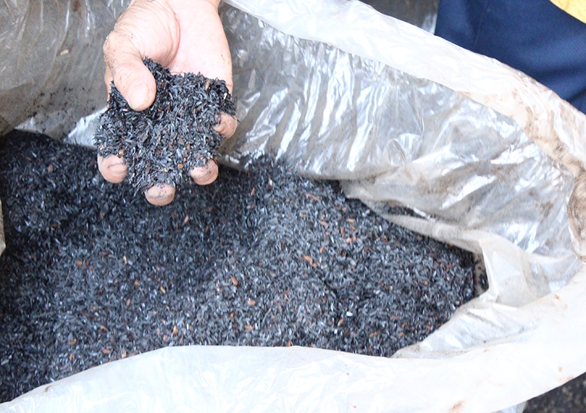 こちらは、もみ殻を燻して作った燻炭(くんたん)。