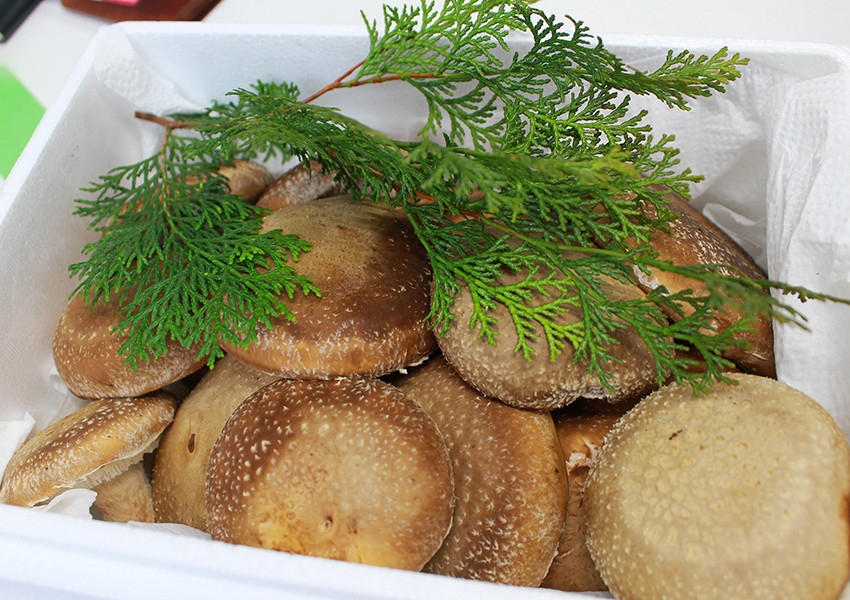国内産広葉樹オガ粉をメインに、国外(約10ヵ国)からの輸入穀物を原料に香り、味、栄養の良い所取りをした椎茸が収穫できます。