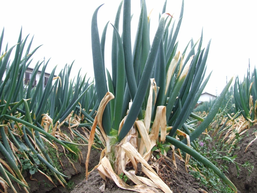 約30cmの高いうねが「いわきねぎ」の長い白根を作り出しています。