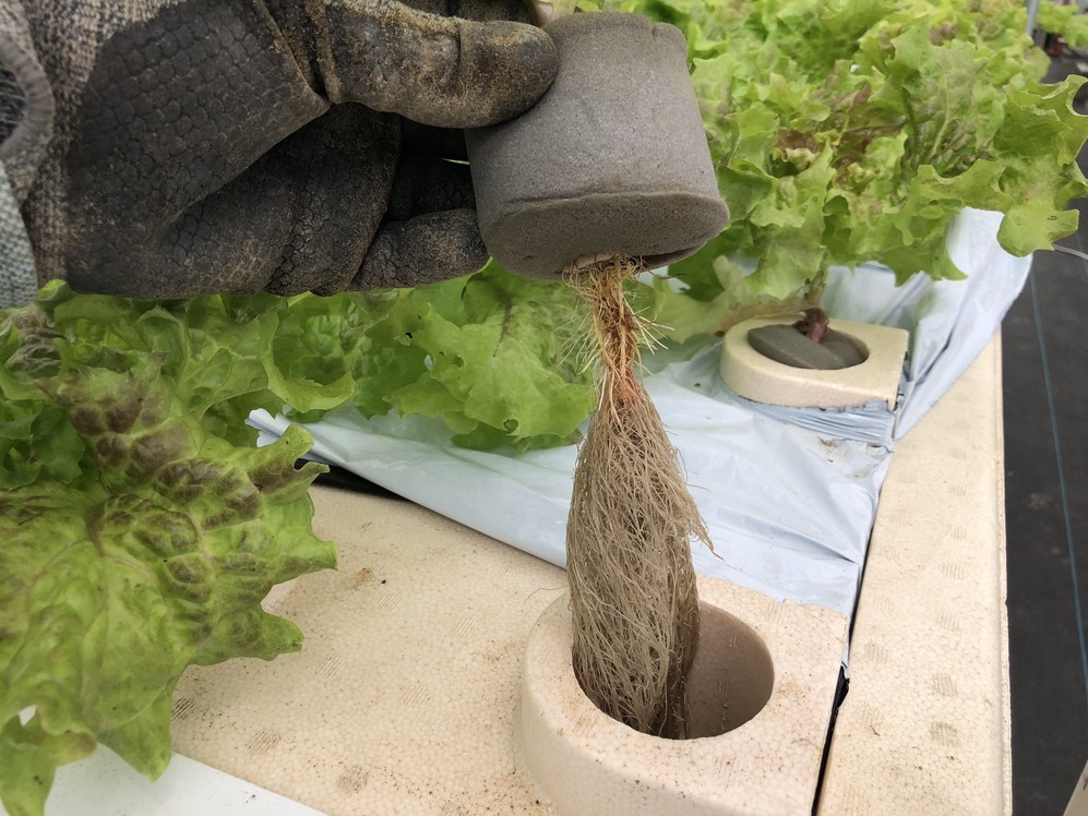 水耕栽培は土を使わずに栽培するので、根っこはむき出しの状態になっています。