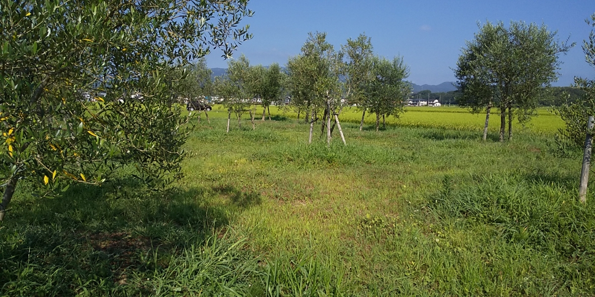 磐栄アグリカルチャーはいわき市内2か所、計2反歩の畑でオリーブの木を栽培しており、好環境のもとでオリーブの木がのびのびと育っています。