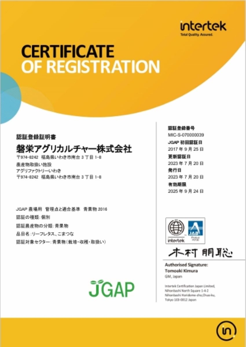 JGAP認証を取得しており、環境保全のための取り組みを推進しています。