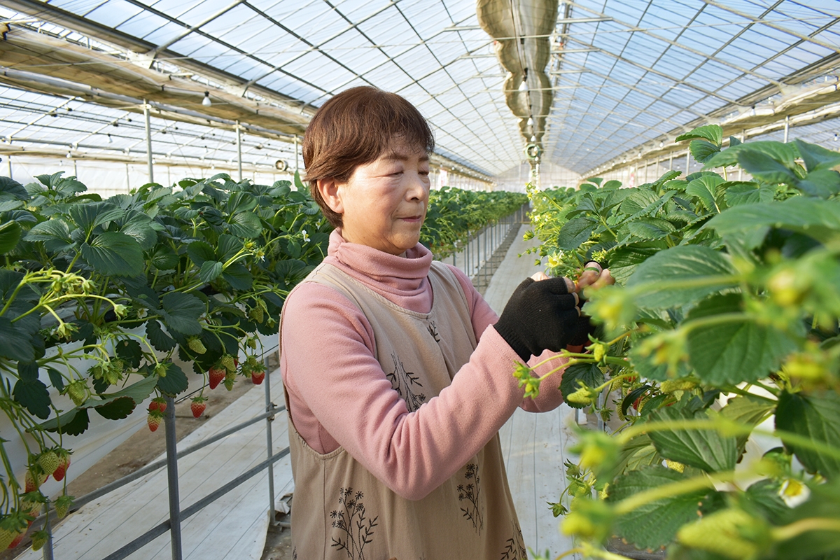 秀史さんの母、はつ子さんも、広いハウスの中、黙々と作業に勤しんでいます。