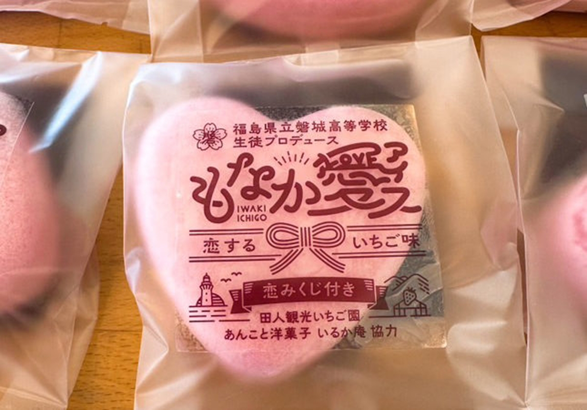 2025年には、磐城高校のグループワークの一環で、磐高生と小名浜の人気スイーツショップ「あんこと洋菓子 いるか庵」と「田人観光いちご園」がコラボし、可愛らしいハート型の最中に、いちごのアイスを挟んだ、「もなか愛(アイ)ス ~恋するいちご味~(恋みくじ付き)」を開発しました。磐城高校の購買部のほか、「あんこと洋菓子 いるか庵」、「LATOV(ラトブ)」で購入可能です。