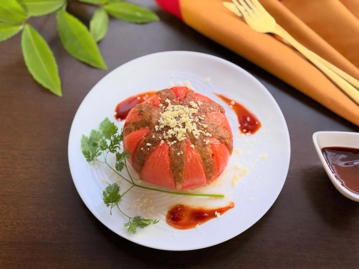 ジューシー&とろ旨な焼いたトマトとお肉が相性抜群。トマトが主役な美味しいメイン料理です!