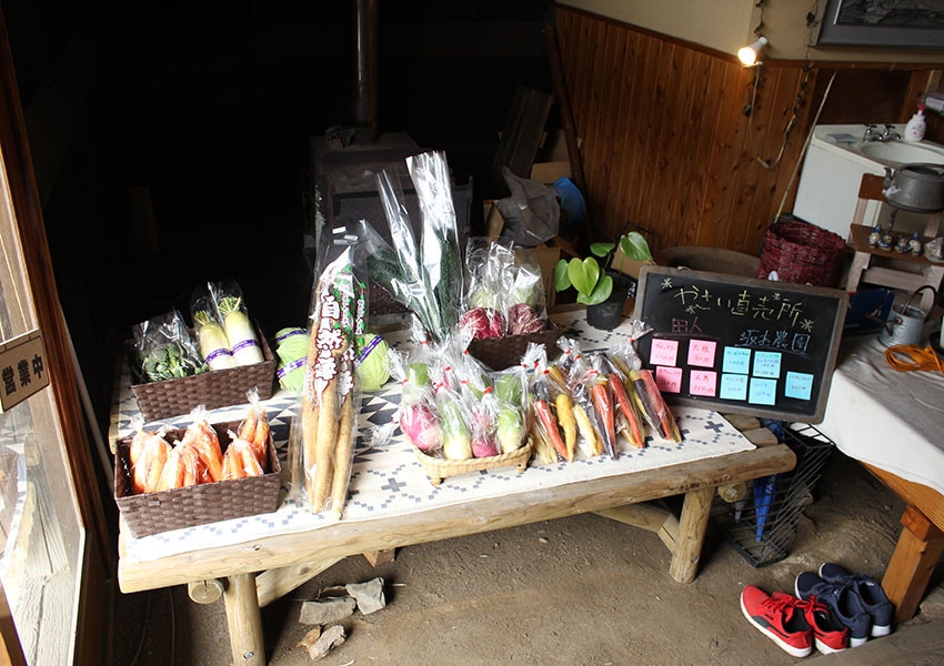 お店の入口には直売所もあり、田人を中心としたいわき野菜を購入することもできます。