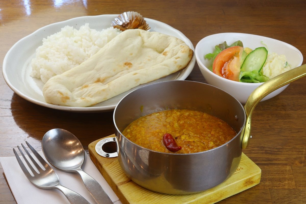 一番人気メニューの「スパイシーインドカリー」。奥深いコクとスパイシーさがありながら、日本人でも食べやすい味わい。ナンとライスの両方で楽しめるのも魅力です。