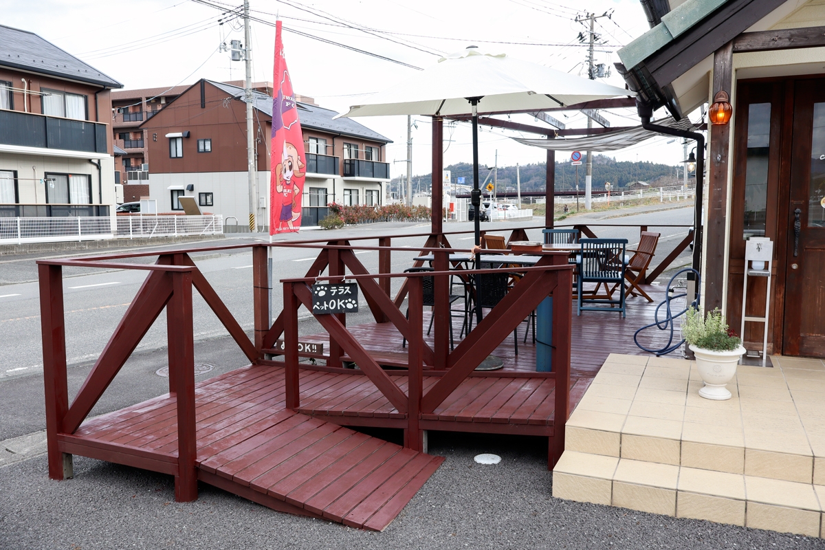 店舗北側のテラス席。こちらはペット同伴OK。愛犬と一緒に食事が楽しめます(店舗内は不可)