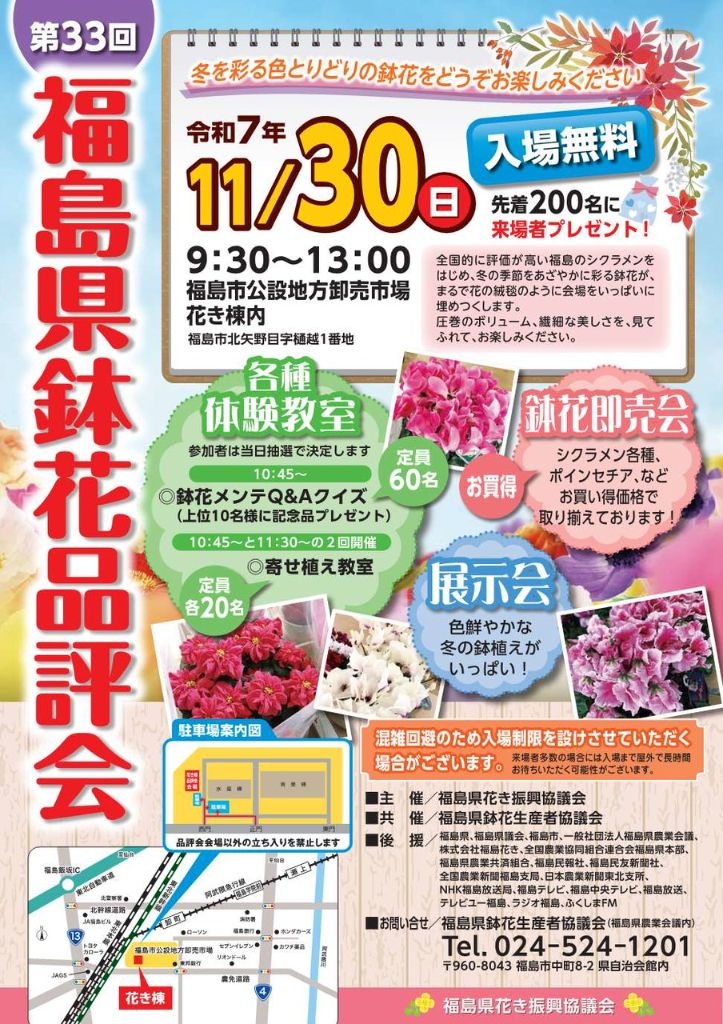 農業情報LINE【第33回福島県鉢花品評会の開催について】