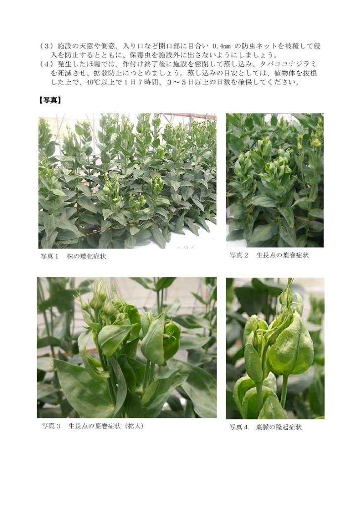 病害虫病害虫防除情報(トルコギキョウ葉巻病)について
