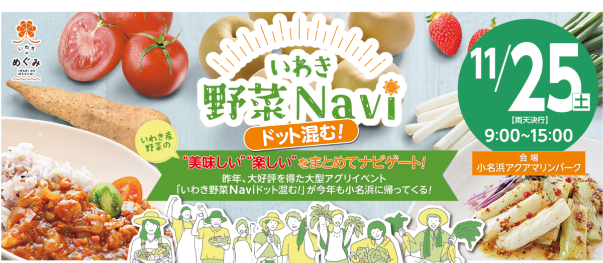 11月25日(土)、小名浜アクアマリンパークにて「いわき野菜Navi ドット混む!」が開催されます。