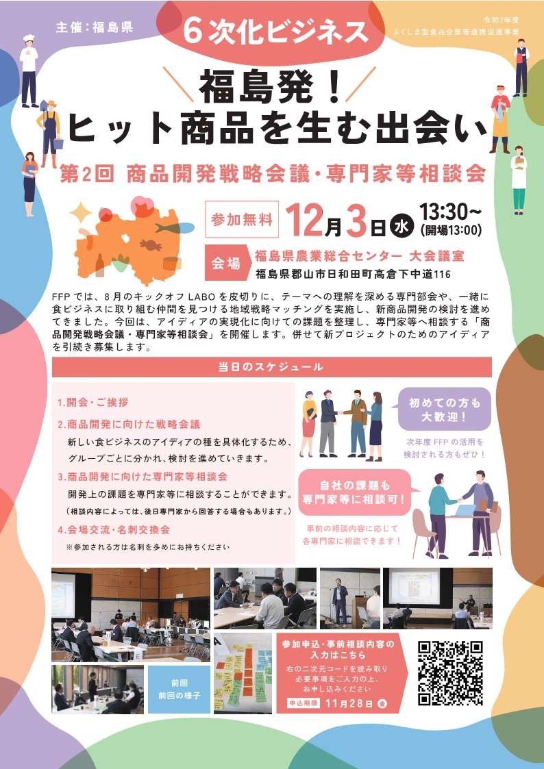 12月3日(水)、福島県が主催するふくしまフードプロジェクト第2回商品開発戦略会議・専門家等相談会が開催されます!