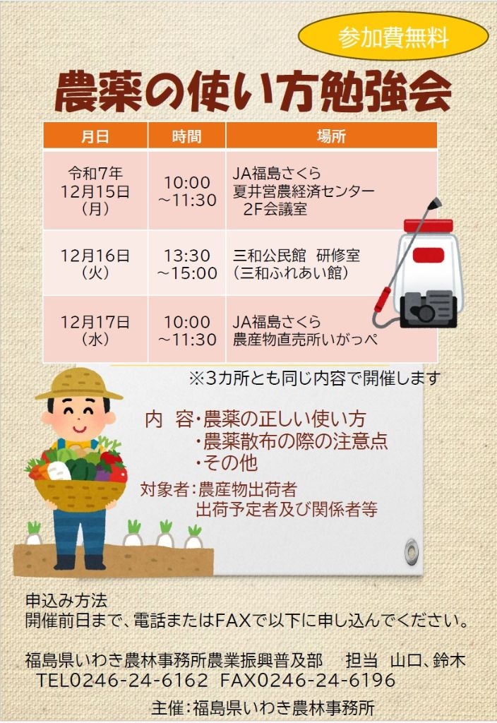 【(農家のみなさまへ)農薬の使い方に関する勉強会のお知らせ】
