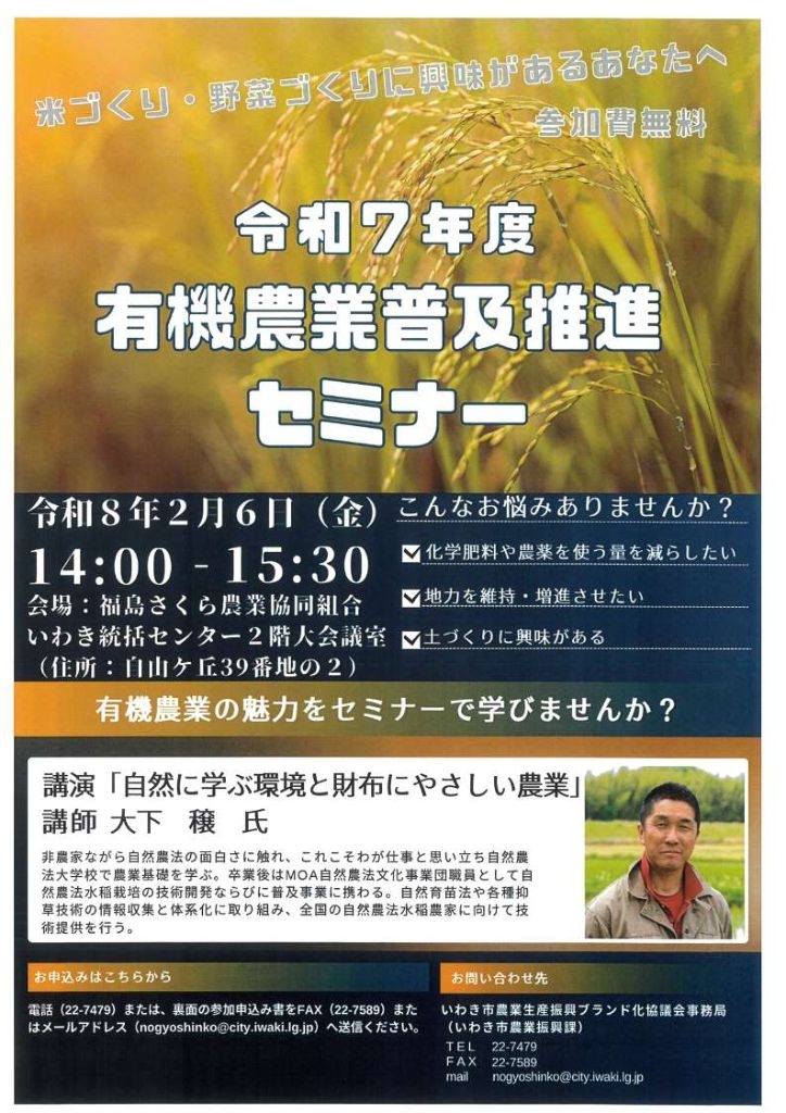 参加者募集!2/6(金)令和7年度有機農業普及推進セミナーを開催します!