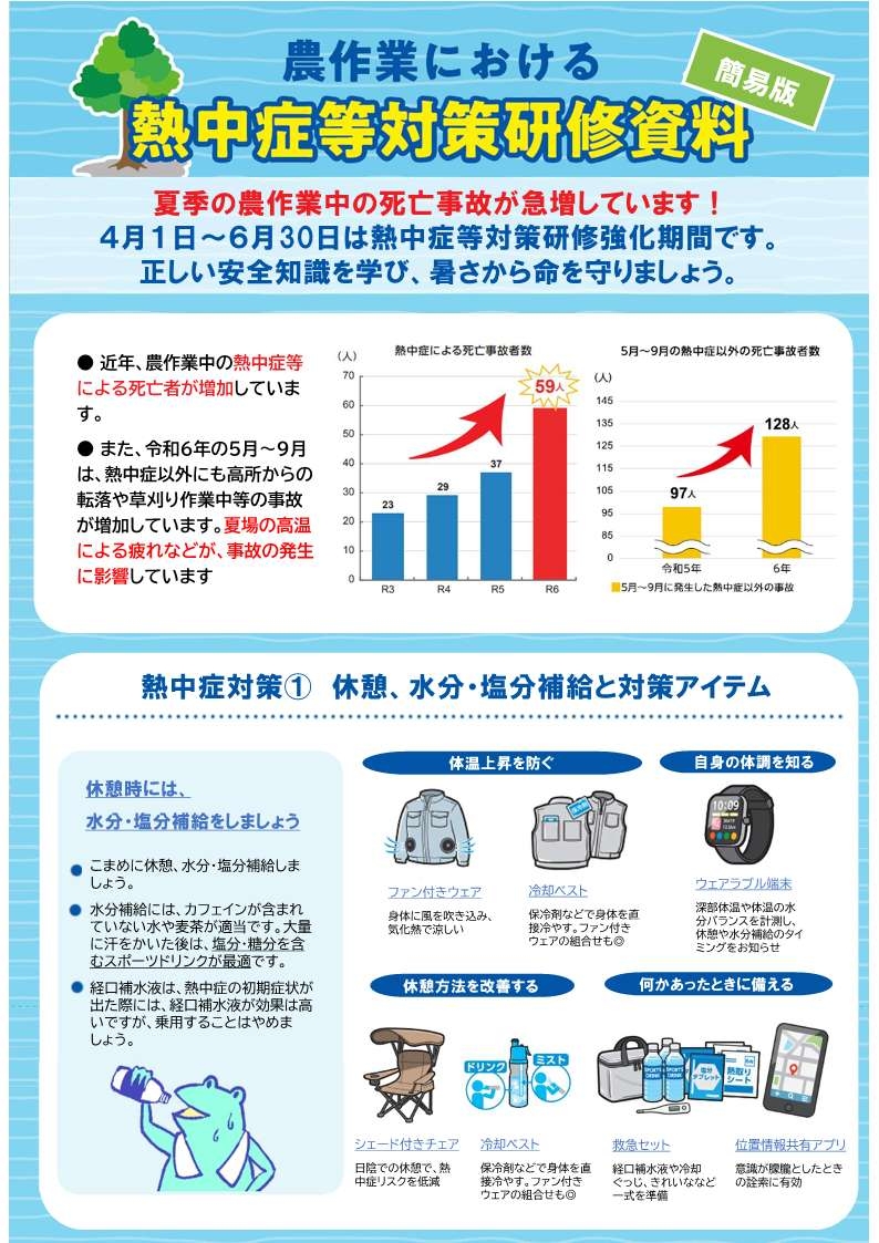 4月より熱中症対策等の研修にご活用いただける研修資材が作成され、農林水産省ホームページに掲載されています。