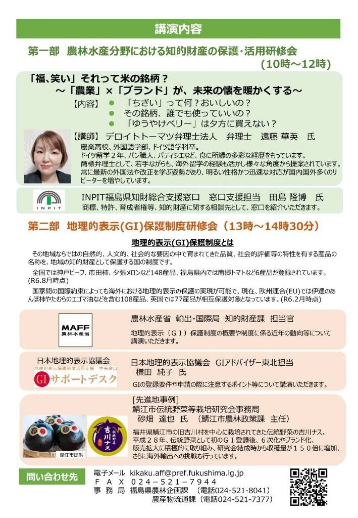 福島県が農林水産物の「知的財産」に関する研修会を開催します。