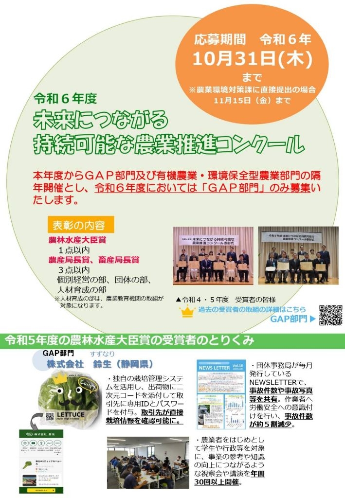 農業情報LINE令和6年度未来につながる持続可能な農業推進コンクール推薦者募集
