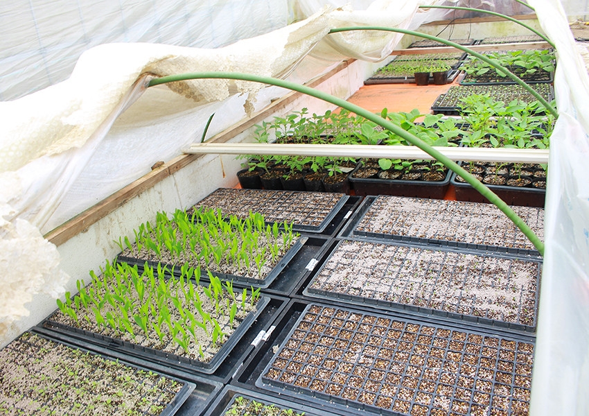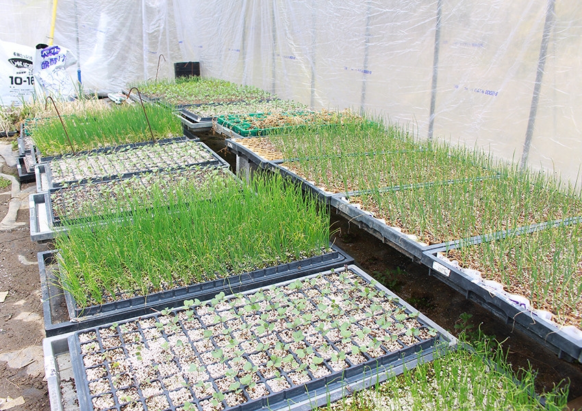 別のハウスにも約10種類ほどの定植前の苗が保管されています。