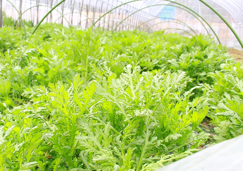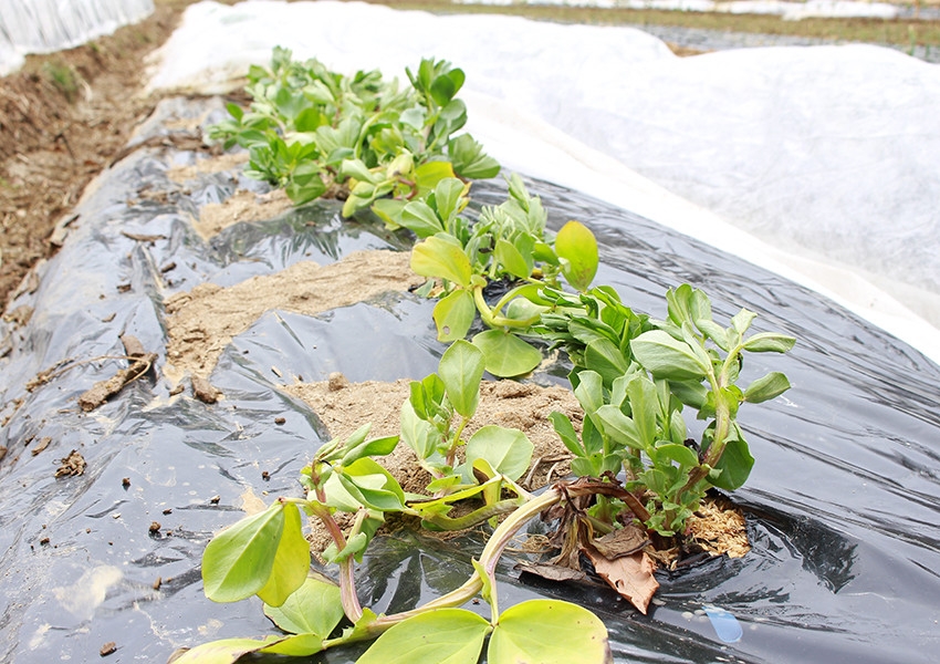 寒い時期には小さいハウスの上に布団をかぶせるなどして保温効果を高めています。