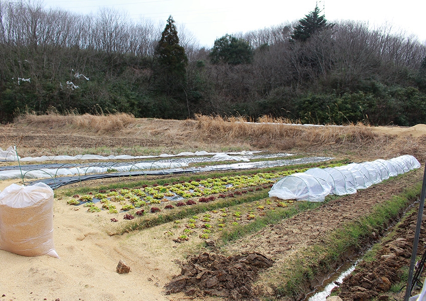 所有している畑は、牛糞や豚糞、トマトの茎などから作られた有機肥料と田んぼに残った水分を吸収し土を柔らかくさせる効果のあるもみ殻を使用して、元々田んぼであった土地から畑に改良しました。