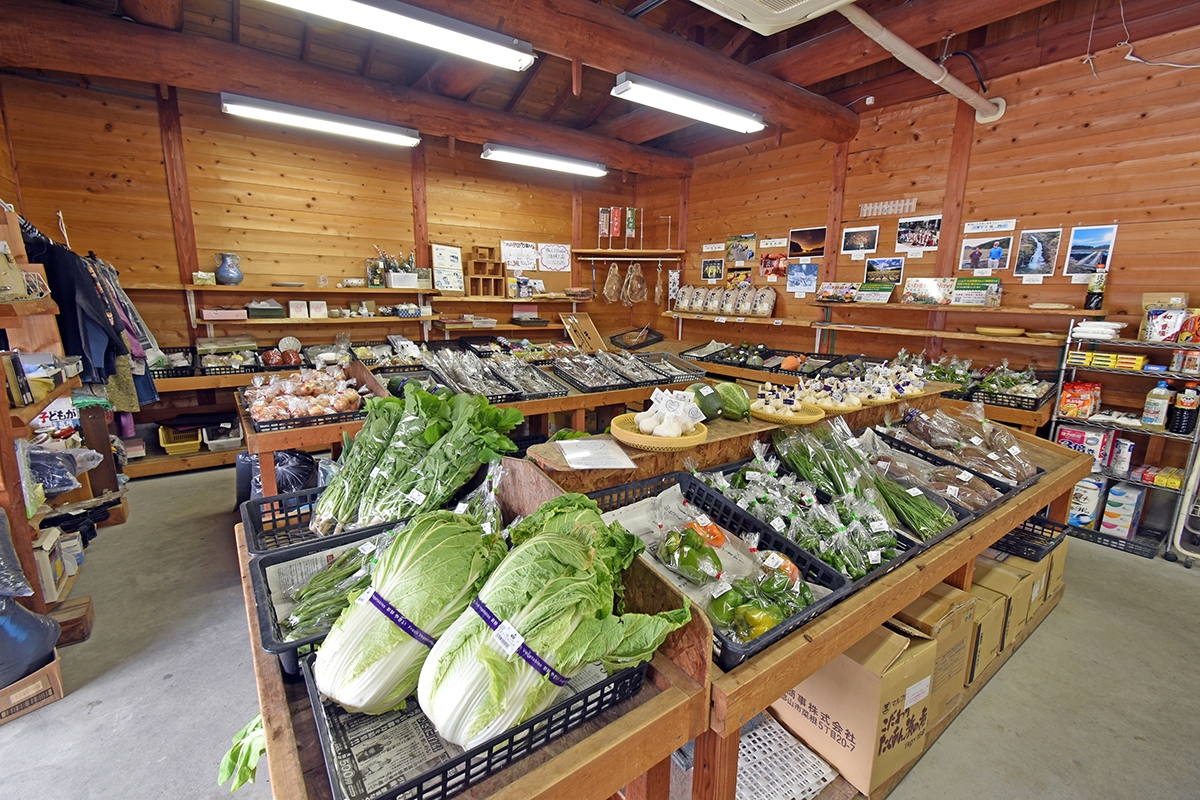 菊田さんが店長を務める「三和町ふれあい市場」。「ニンニクおにぎり」「いとこまんじゅう」に加え、三和町産の新鮮な野菜や漬物、三和町産の野菜を使ったお弁当やお惣菜、大福やまんじゅう、焼き菓子などの菓子類などが販売されています。