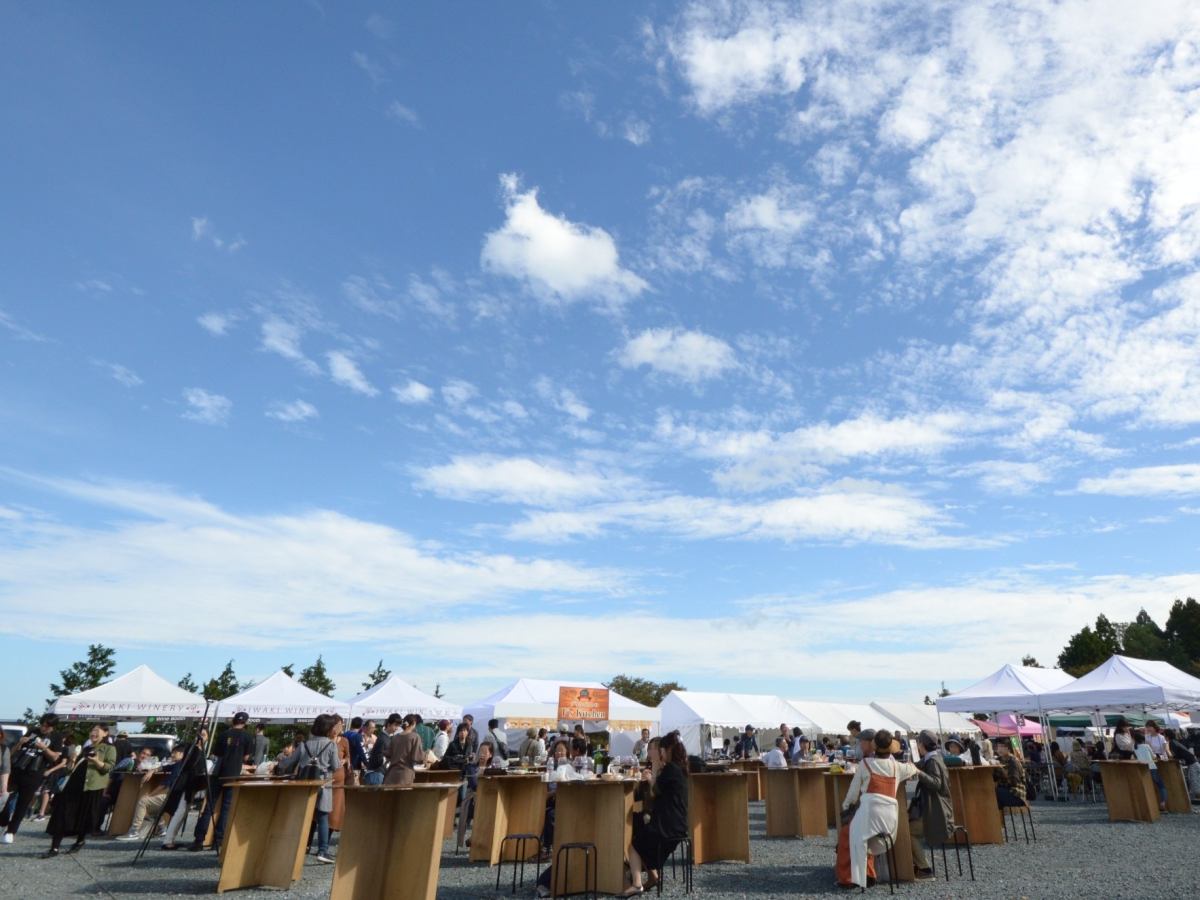 毎年11月に、秋の実りを祝う「いわきワイナリー収穫感謝祭」を開催。全種類のワインを楽しめるほか、できたてのワインを直接蔵出しする「にごりワイン」も味わえます。地元グルメのブースや音楽ショーでも賑わい、2025年には約1,000人以上のお客様が訪れました。中には北海道や大阪などの遠方から足を運ぶ人もいたそうです。「この日は普段は解放されていないぶどう畑も開放されるので、ぜひぶどう畑の中でゆったりとワインを楽しんで欲しいです」と四家さん。