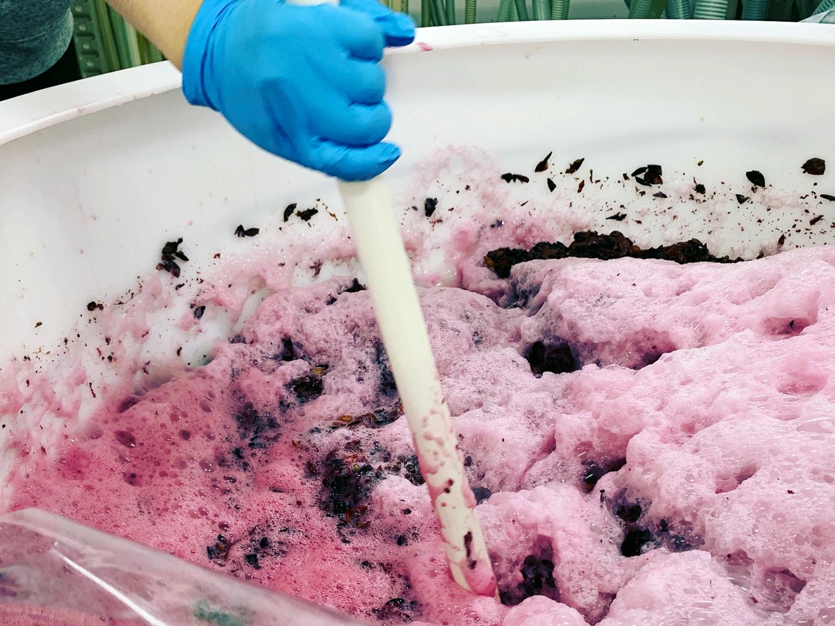 ワイン製造の中で最も重要なのが、発酵の工程。ぶどうが発酵する際に温度が上昇していきますが、この温度を適切に管理する事がワインの品質を左右します。白ワインは香りが飛ばないよう低温に保ち、赤ワインは発色を良くするため、高すぎず低すぎない、絶妙な温度に保ちます。