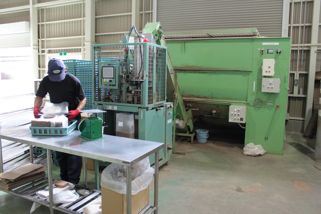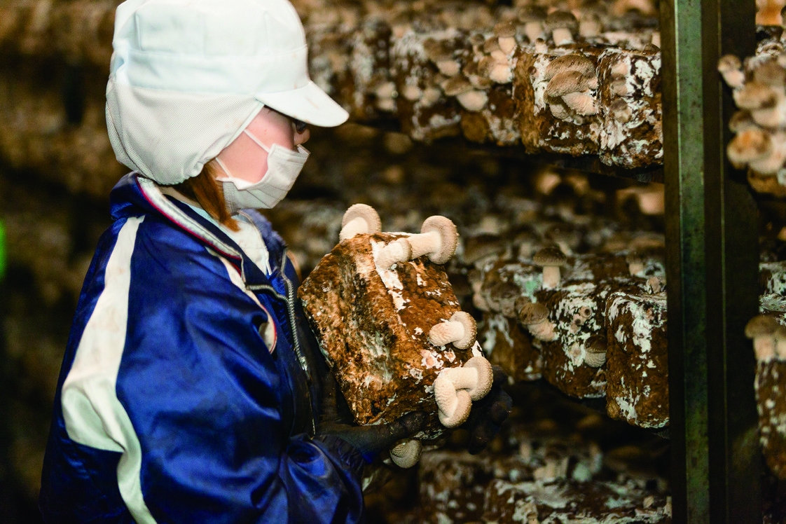 菌床づくりから椎茸の収穫、包装、出荷まで自社工場で一貫生産を行っています。