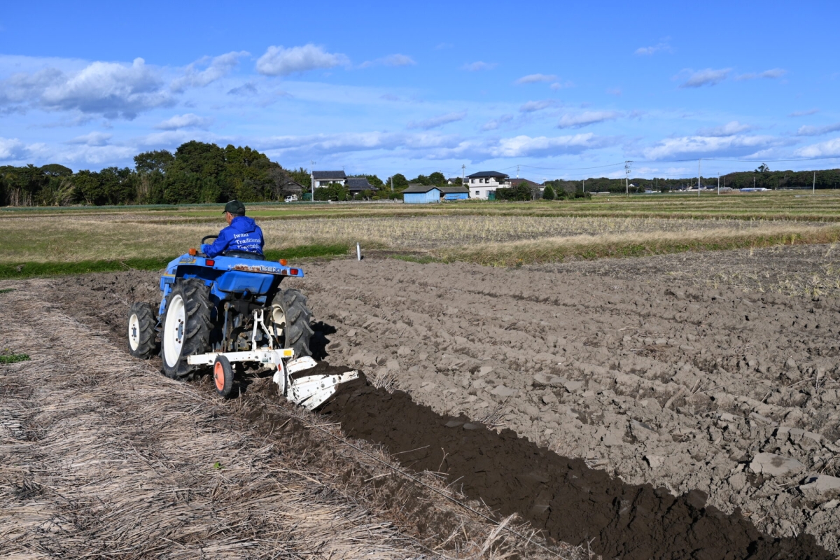 定植前に、機械で土を深く耕すことが、形が良い芋を育てるために必要不可欠です。