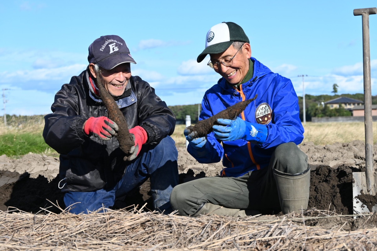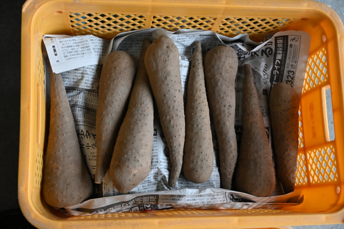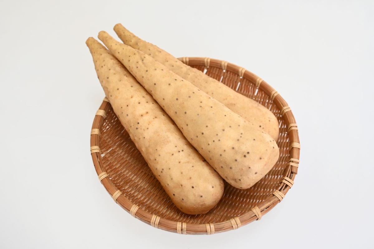いわきとっくり芋は、長芋と自然薯の中間ほどの粘りと、アクやクセの少ない、ほんのりとした甘みがあり、すりおろして生で食べるほか汁物や天ぷらなどの加熱料理にも最適です。地元市場での需要も高く、また、贈答用としても人気があります。