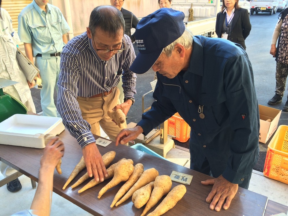 出荷が始まる前には、部会員・市場関係者を集めて目揃会を開催し、形状や品質を確認しています。