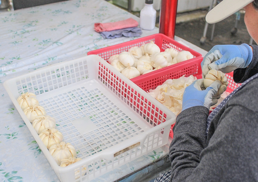 傷がついてしまった芽子にんにくは加工品として販売されています。