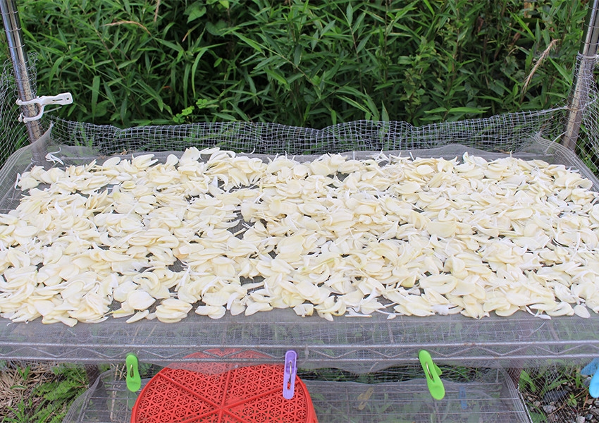 障がいのある方や高齢の方と共に協力しながら芽子にんにくの生産を行っています。