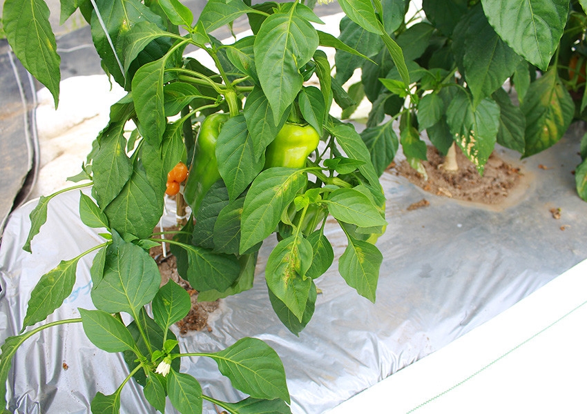 パプリカの色づきをよくするために、栽培する際には、銀色のマルチを使用しています。