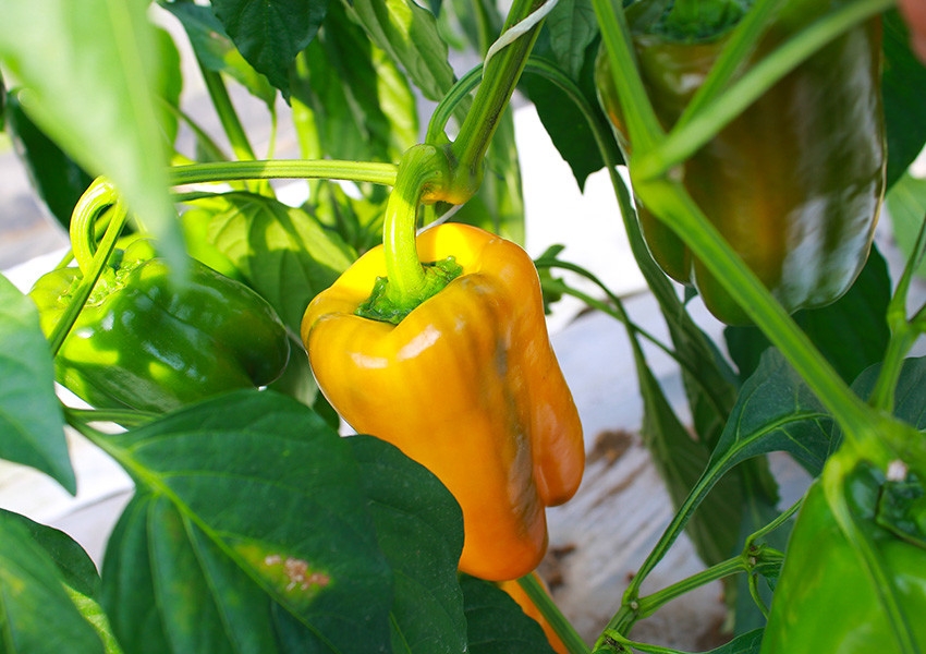写真のパプリカも、もうすぐ完熟して鮮やかな赤に色づきます。