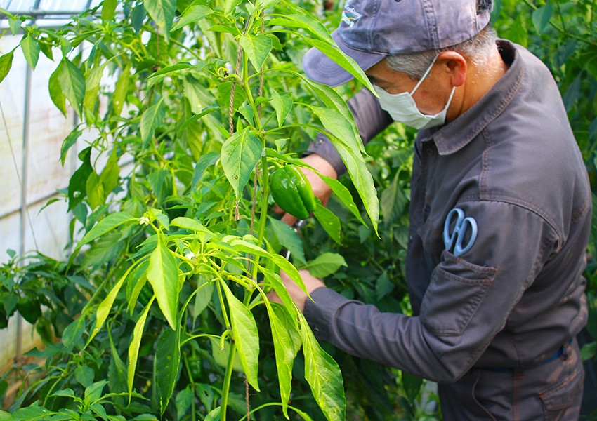 最近はピーマンに力を入れて栽培しているため、江坂農園の代表品目になっています。