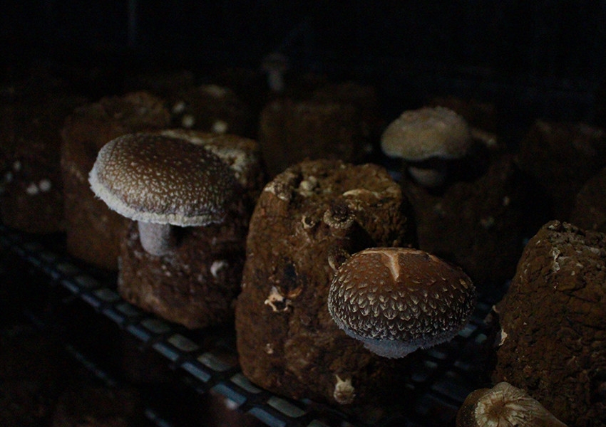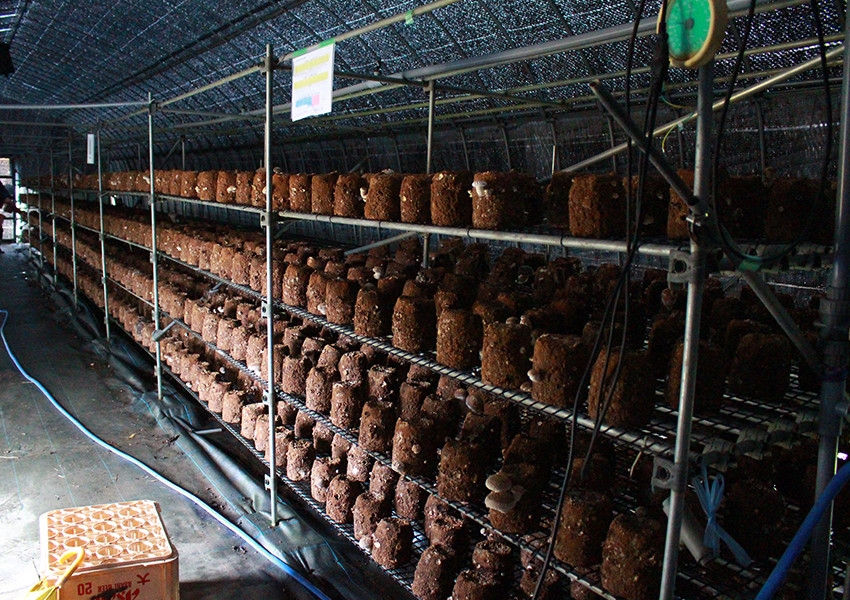 国内産広葉樹オガ粉をメインに、国外(約10ヵ国)からの輸入穀物を原料に香り、味、栄養の良い所取りをした椎茸が収穫できます。