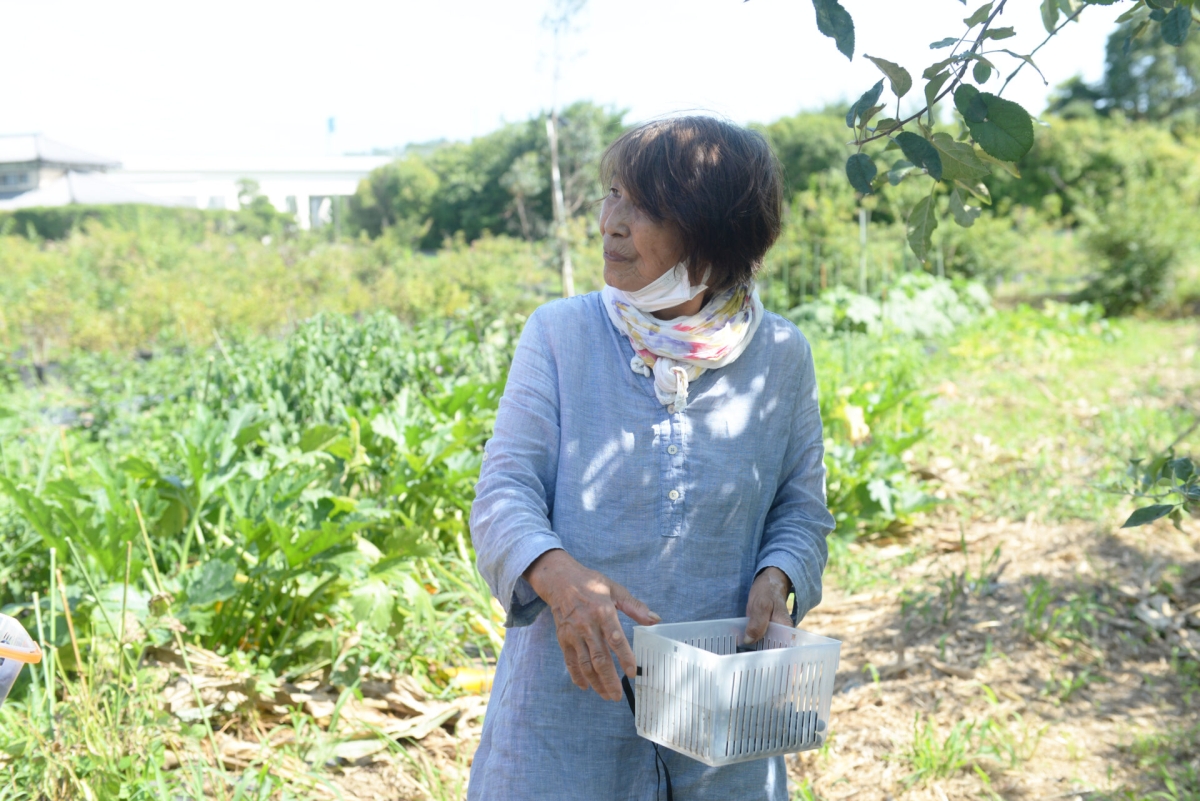 妻の智恵子さん。雅夫さんとともにブルーベリー、米、季節の野菜を育てています。畑の一角には近くの幼稚園のサツマイモ畑があり、年間を通じて子どもたちの声が絶えません。