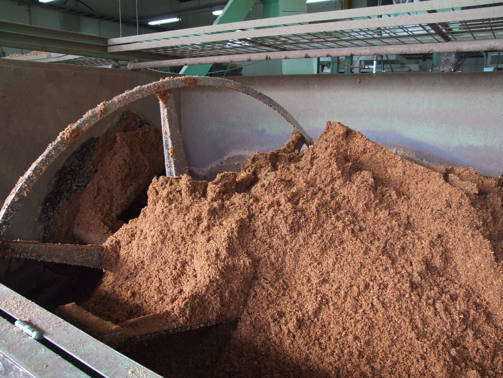 スギ100%のおが粉とふすま、貝化石、乾燥オカラ等を練り合わせ培地を作ります。