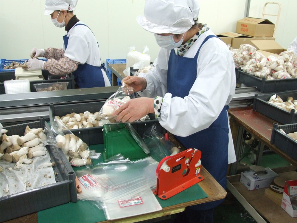 収穫したきのこは主に手作業でパック詰め、あるいは袋詰めし出荷していきます。