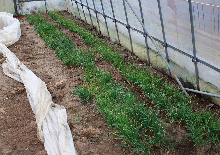 ハウスでは原木椎茸やニラ、定植前の苗など育てています。